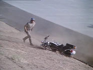 - Rally 'Round the Bank - After receiving his 1 year without incident medal, Ponch crashed and damages the front fender on his bike on Sindy's patrol car when he does a u-turn outside his apartment.